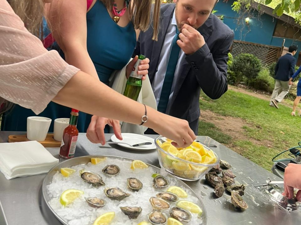 Ofrecemos una barra de ostras donde tus invitados pueden acercarse y comer una deliciosa y fresca ostra abierta al instante🦪