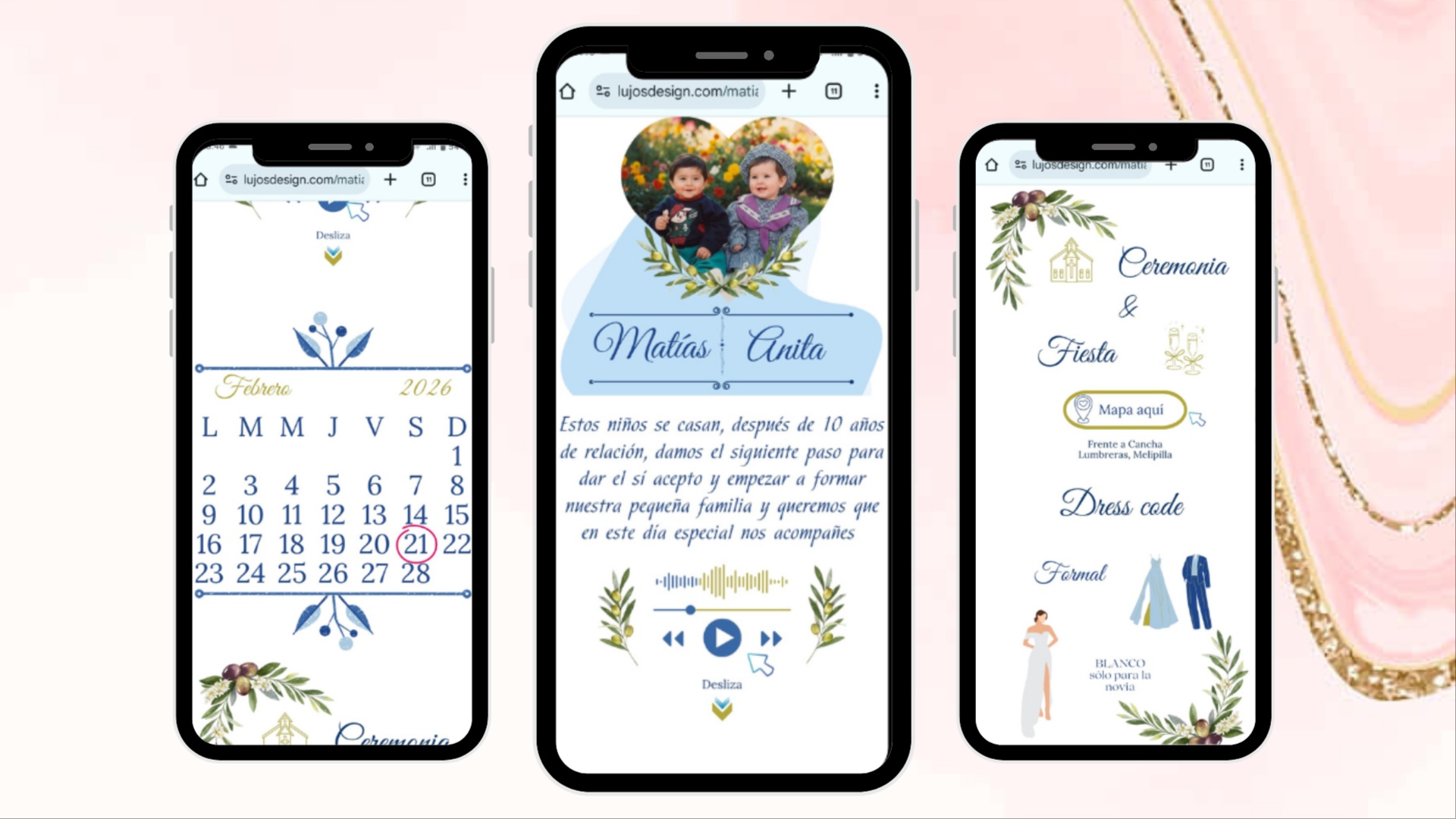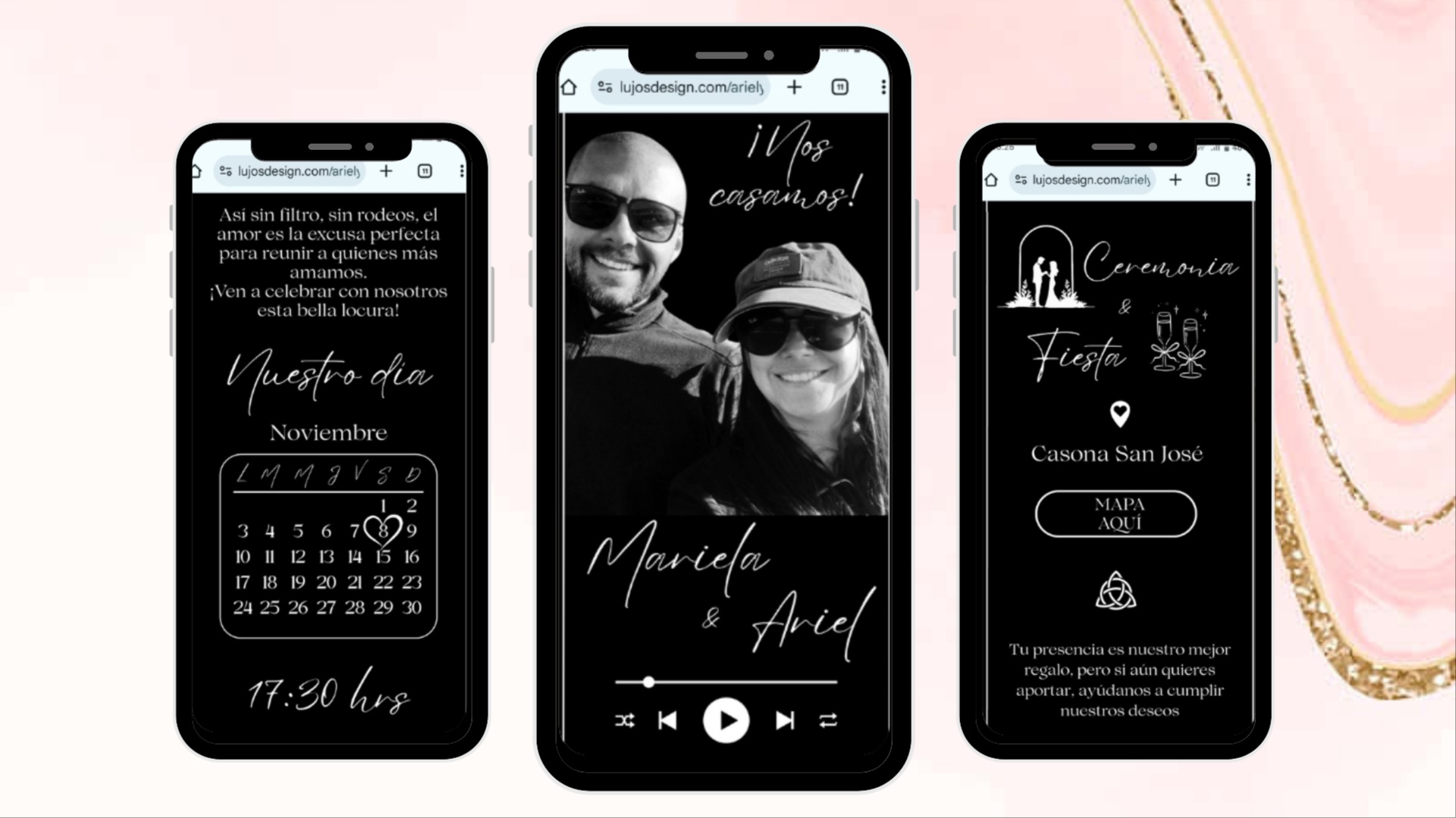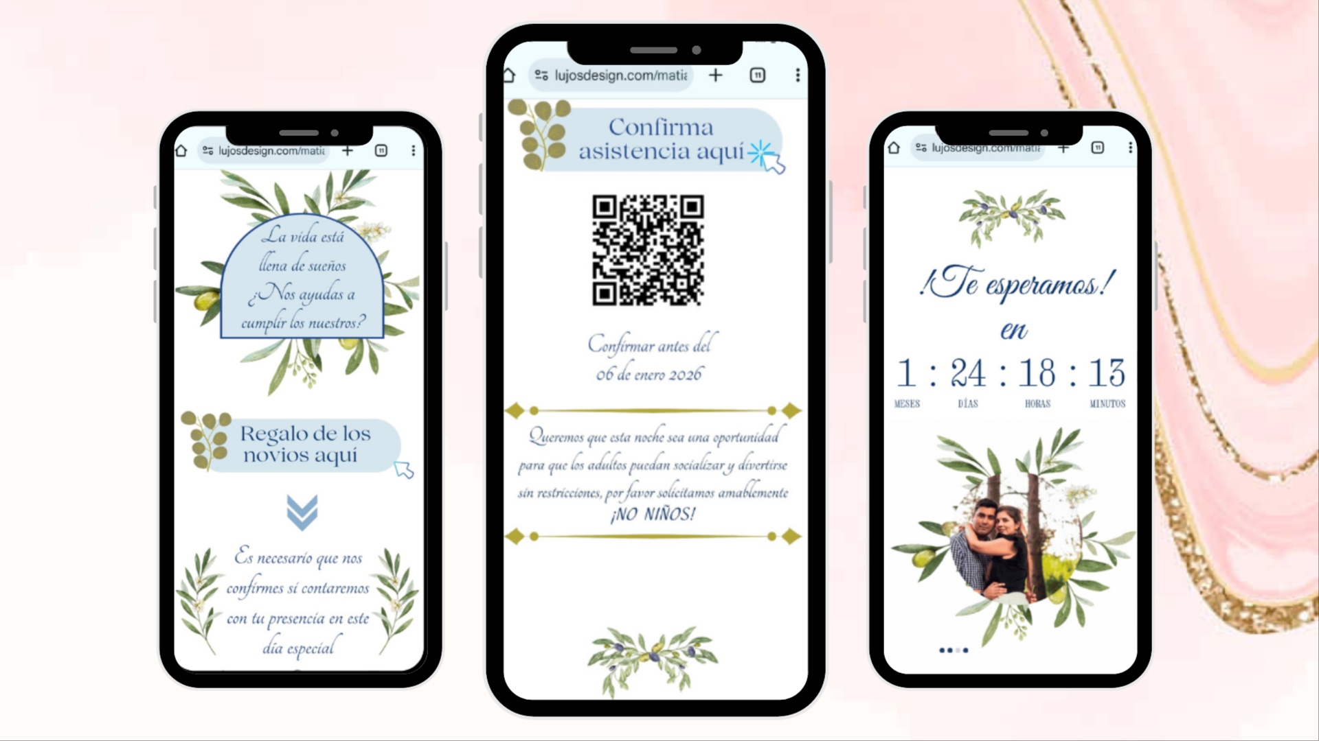 Las invitaciones digitales son accesibles mediante un enlace de sitio web y cuentan con: