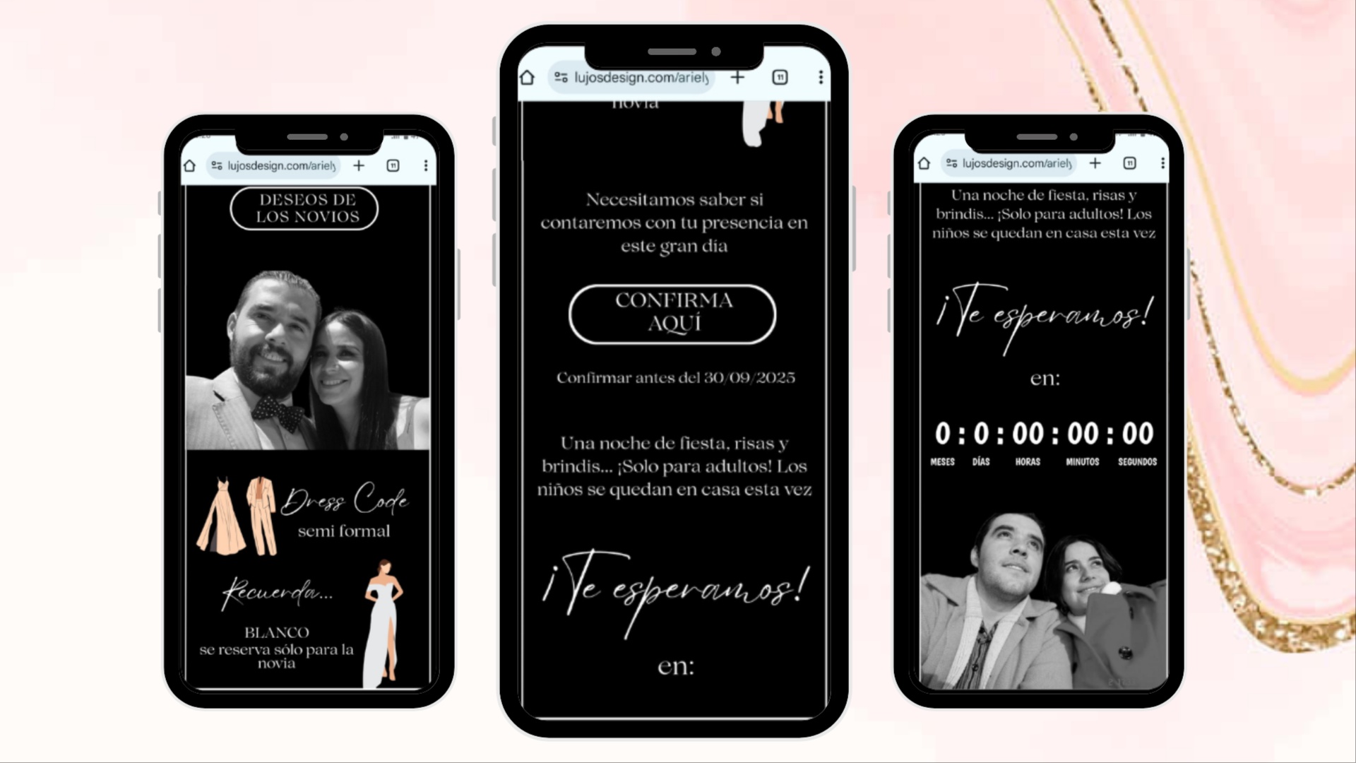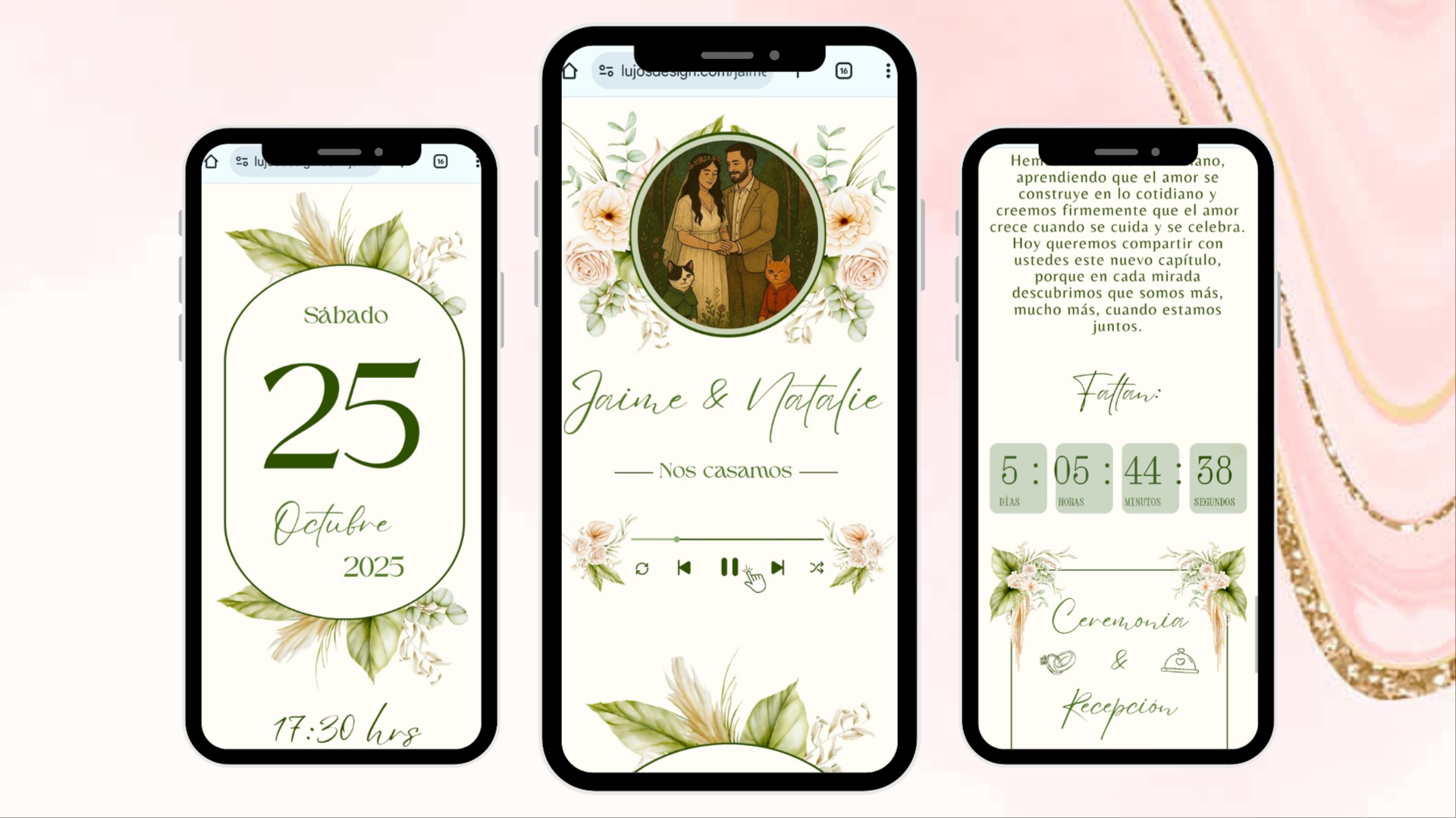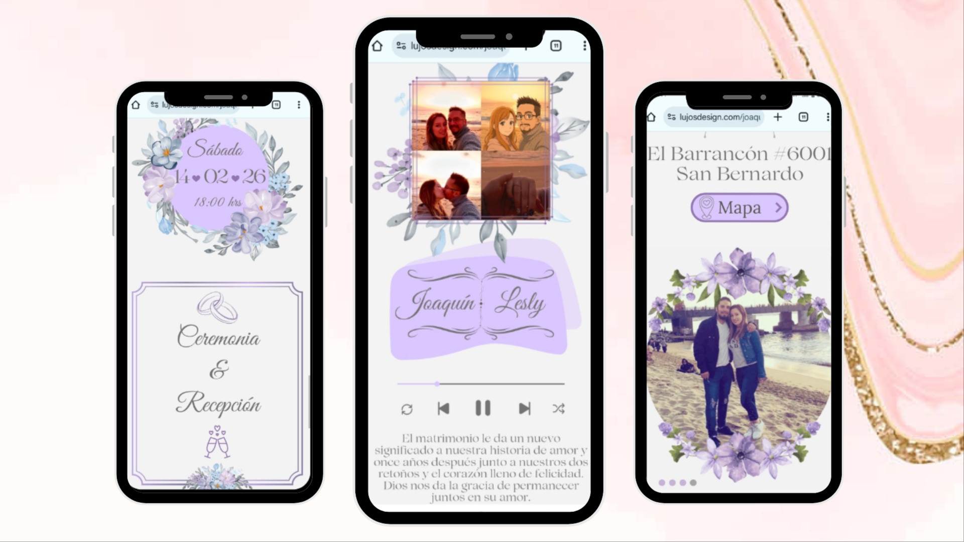 Las invitaciones digitales son accesibles mediante un enlace de sitio web y cuentan con: