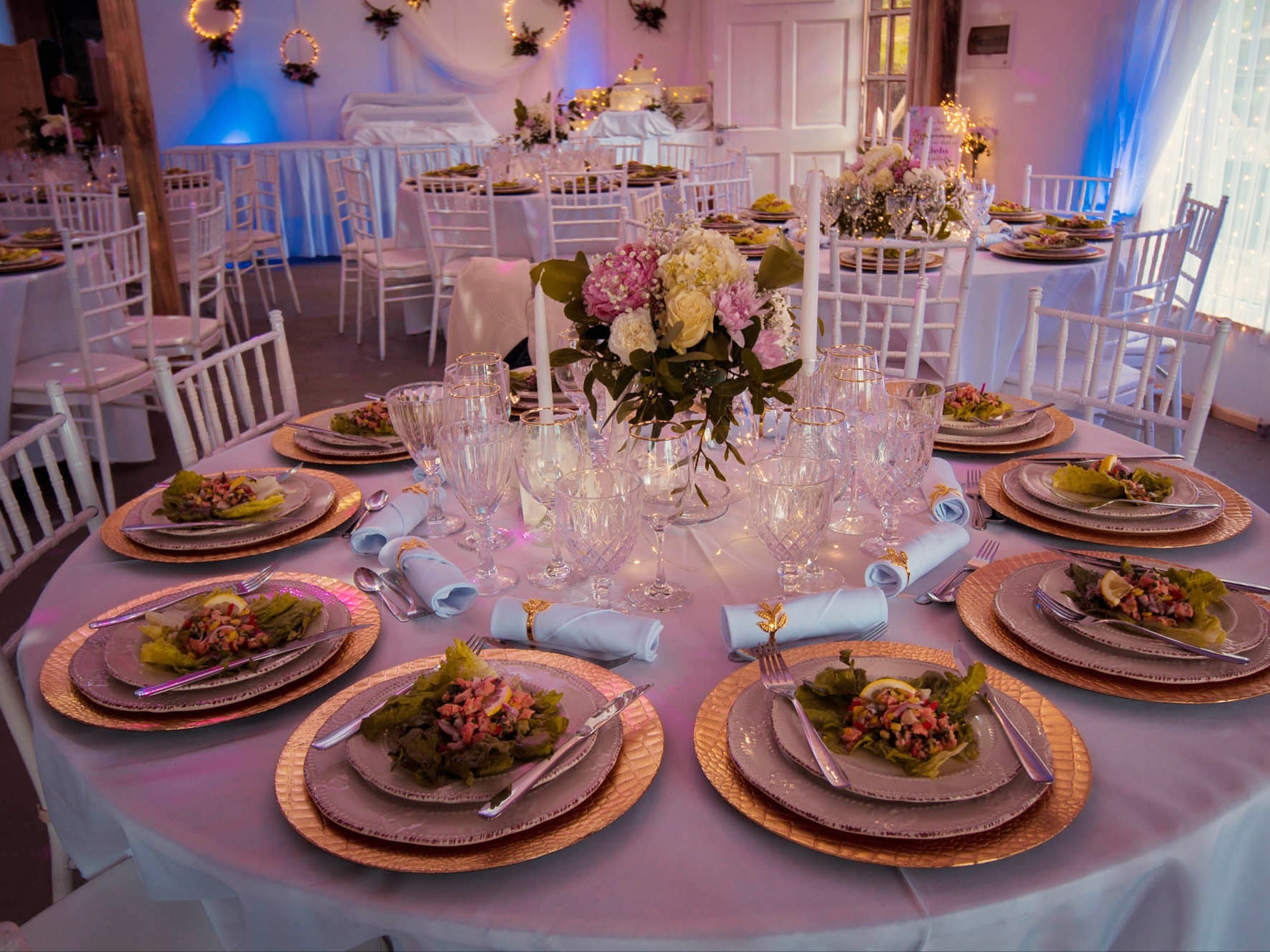 Los servicios que tenemos disponible incluyen banquetería, coctelería, decoración interior y exterior, y arriendos de Combi Bar y carpa techada.