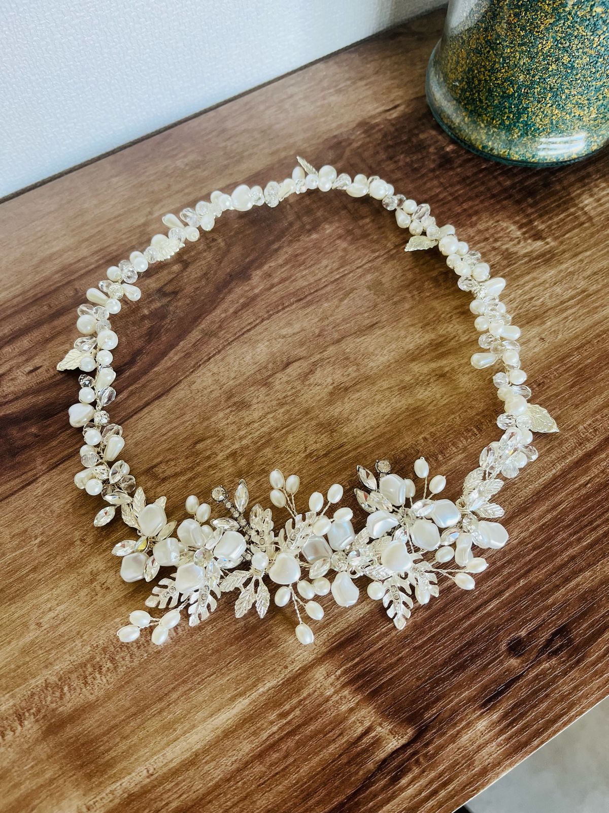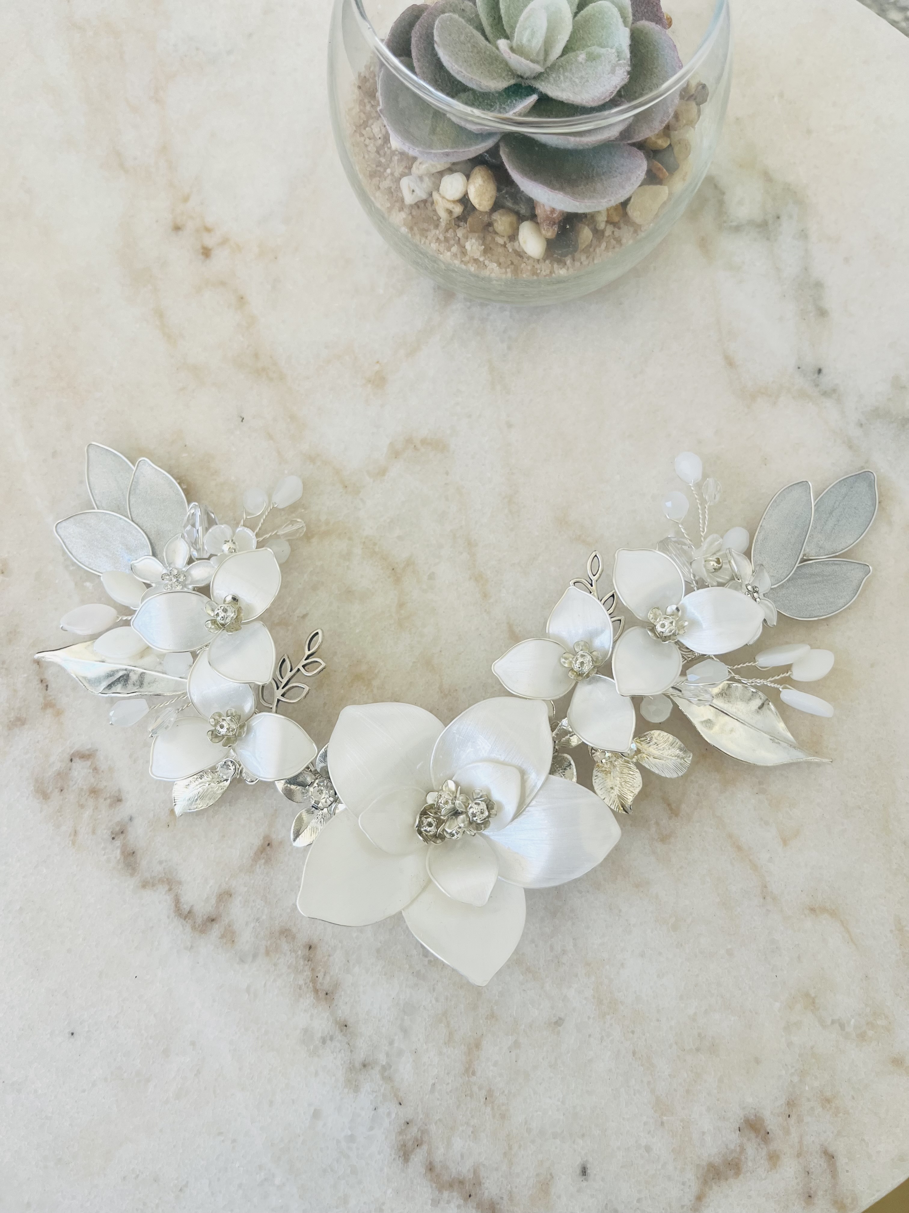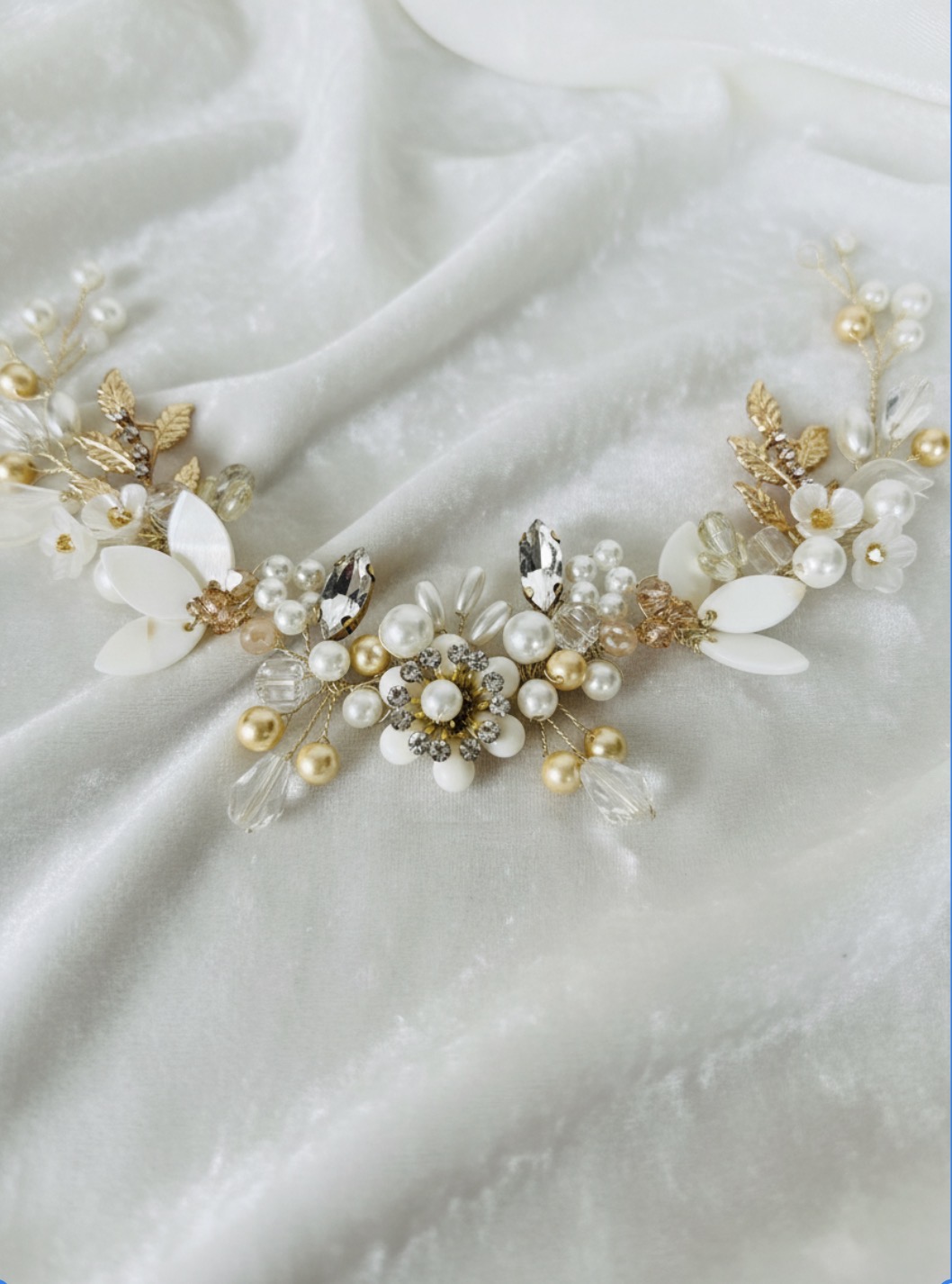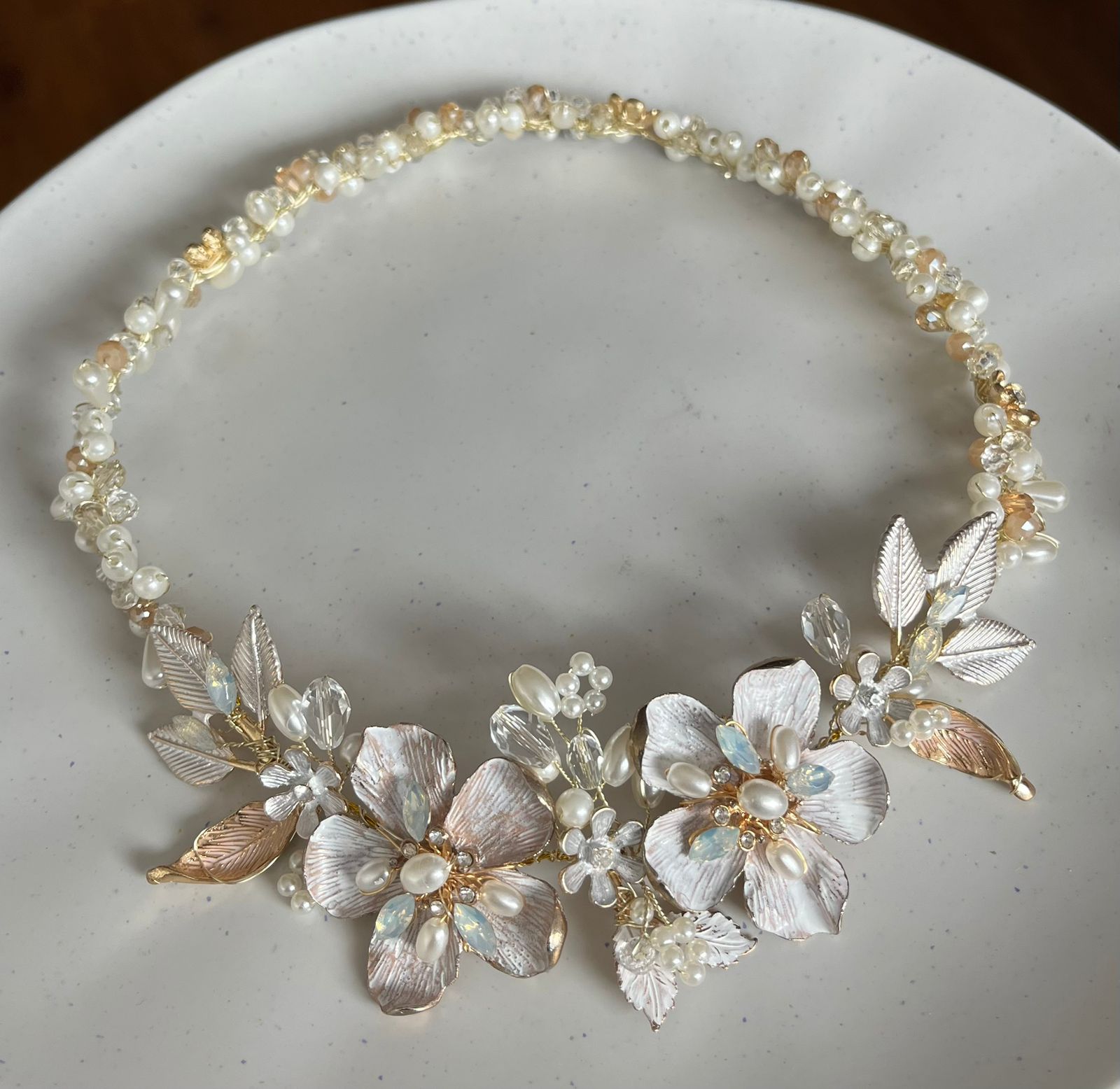 Creamos piezas únicas como coronas, tiaras y tocados personalizados, elaboradas con materiales de alta calidad como cristales, perlas y detalles metálicos en tonos delicados. Cada diseño está pensado para armonizar con tu peinado, vestido y esencia, logrando un look equilibrado, elegante y auténtico.