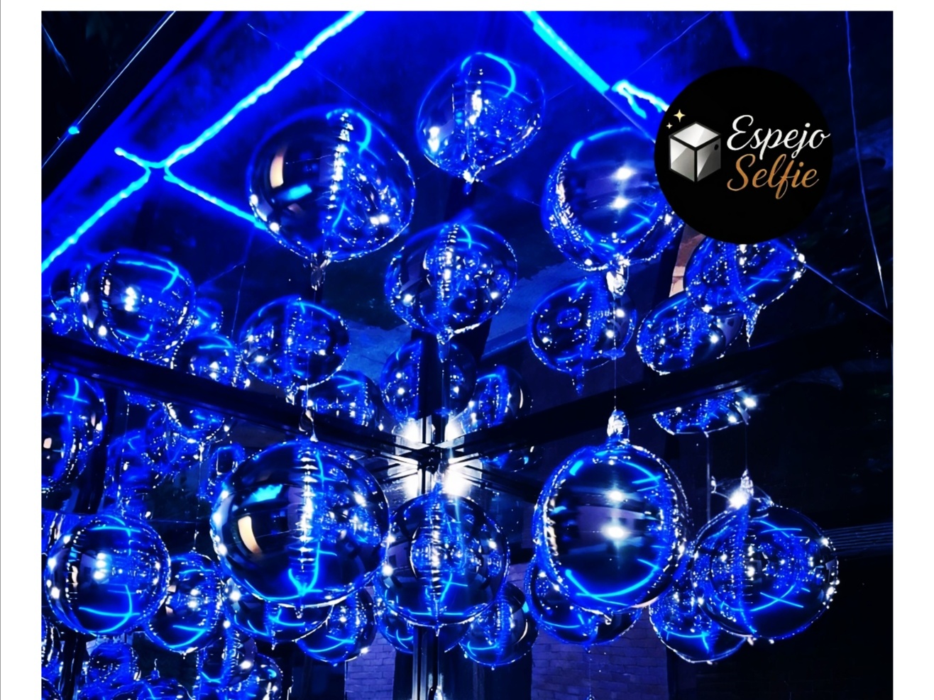 Espejo Selfie es una experiencia fotográfica inmersiva y elegante diseñada para transformar cualquier evento en un momento inolvidable. Su estructura cúbica con muros completamente espejados y esferas colgantes crea un efecto visual único de profundidad y reflejos infinitos. Funciona como un punto de encuentro para los invitados, invitándolos a interactuar, sacarse fotos y vivir una experiencia distinta, moderna y memorable en matrimonios, cumpleaños, celebraciones privadas y eventos corporativos.