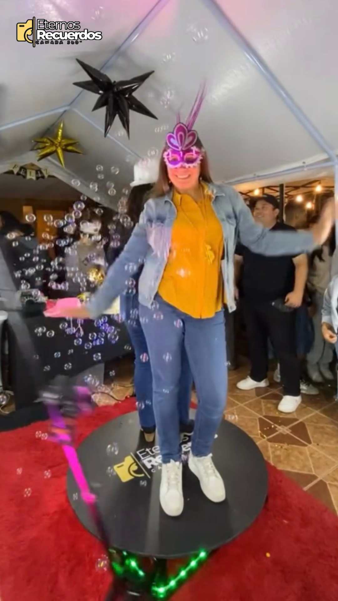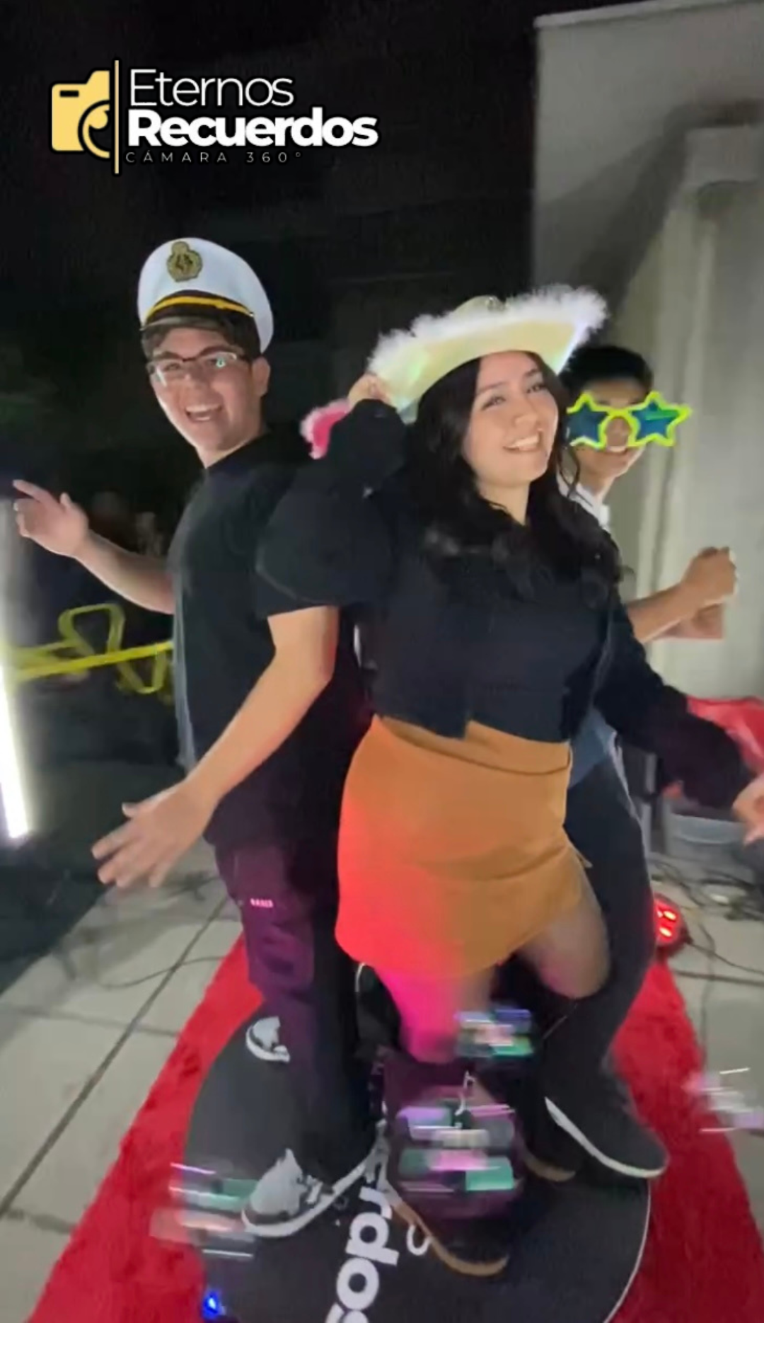 En cada celebración ofrecemos nuestra increíble cámara 360°, una experiencia interactiva que permite a tus invitados grabar videos dinámicos, entretenidos y listos para compartir en redes sociales al instante 📲💫