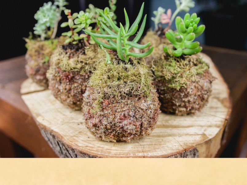 RECUERDOS PARA INVITADOS Y DECORACIÓN DE ESPACIOS CON EL ARTE Y TÉCNICA DE LA KOKEDAMA (PLANTAS CON MACETAS DE MUSGO)