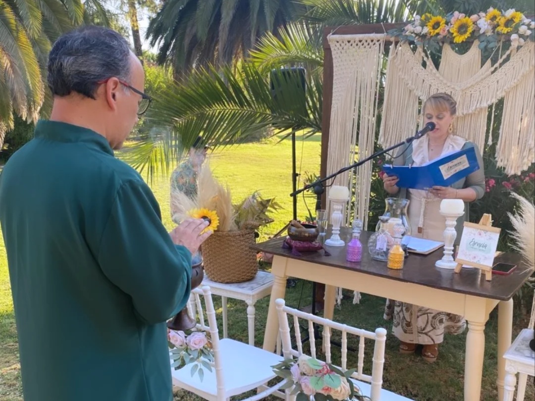 Esencias ceremonias crea ceremonias simbólicas personalizadas que transforman el matrimonio en una experiencia profunda, emotiva y significativa. Diseñamos cada ritual a partir de la historia real de la pareja, cuidando el relato, la estética y la energía del momento, realizamos ceremonias de las arenas, de la luz, de los 4 elementos , Ceremonia del vino y del cuarzo, integrando simbolismo, espiritualidad y emoción. Cada Ceremonia es única íntima y coherente con la esencia de quienes se unen.